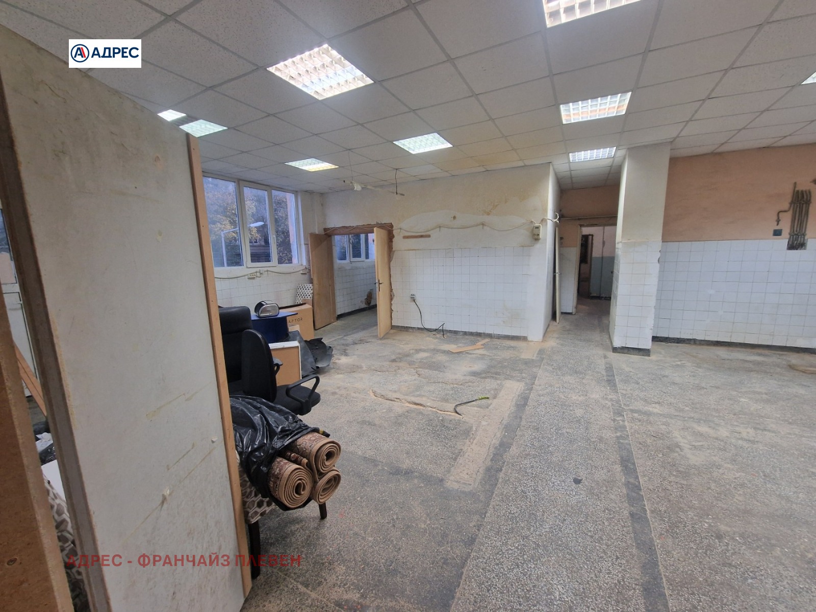 'АДРЕС' недвижими имоти предлага помещение, в ж.к.'' Мара Денчева''- 180 кв. м. Помещението има също санитарен възел и офис помещение ( може да се преустановява по желание на наемателя). Има трифазен ток, вода и възможност за поставяне на рампа.