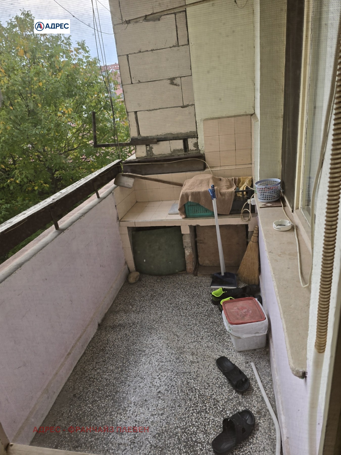 Тераса достъпна от дневната, с изглед към вътрешен двор/улица.