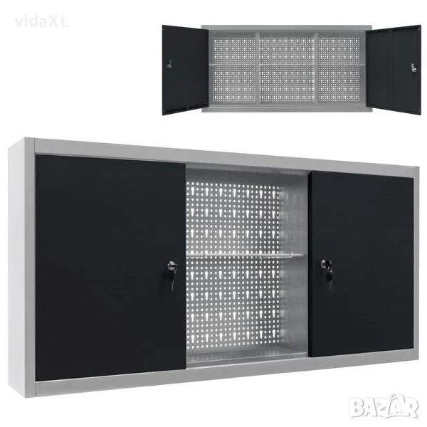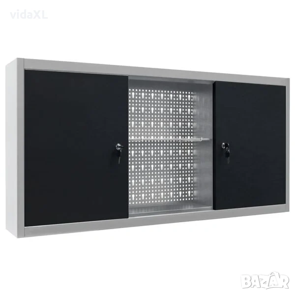Този шкаф за съхранение на инструменти разполага с три регулируеми на височина рафта и перфорирана плоча с отвори евро стандарт, които могат да бъдат използвани за закачане на различни видове инструменти като гаечни ключове, клещи, чукове и др. Оборудван с две заключващи се врати (включени са 2 ключа за всяка врата), шкафът за инструменти осигурява допълнителна безопасност. Изработен е от метал с много здраво покритие, устойчиво на надраскване, което го прави стабилен и лесен за почистване. Този продукт трябва да бъде сглобен.