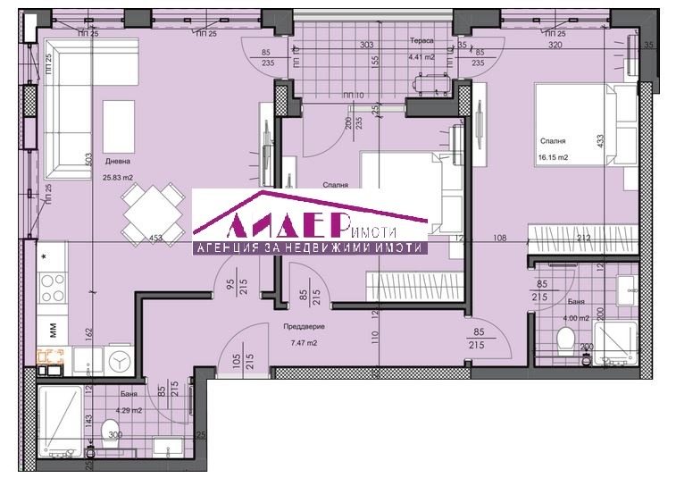 🏦 ТИП ИМОТ: 3-стаен апартамент с площ от 113 кв.м., състоящ се от: просторна дневна с обособен кухненски бокс с площ от 26 кв.м., две самостоятелни спални с площ от 16 кв.м. и 13 кв.м., панорамна тераса, два санитарни възела и входно антре