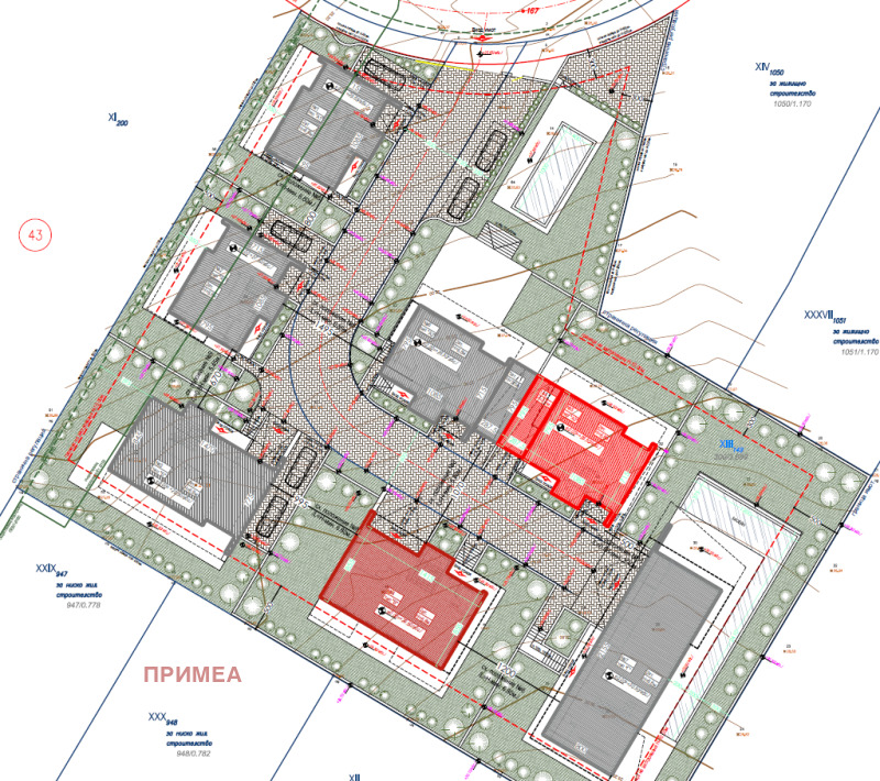 10. Вертикална планировка изпълнена на 100 %, съгласно одобрения проект, изградена напоителна система, дренажна система и озеленяване;