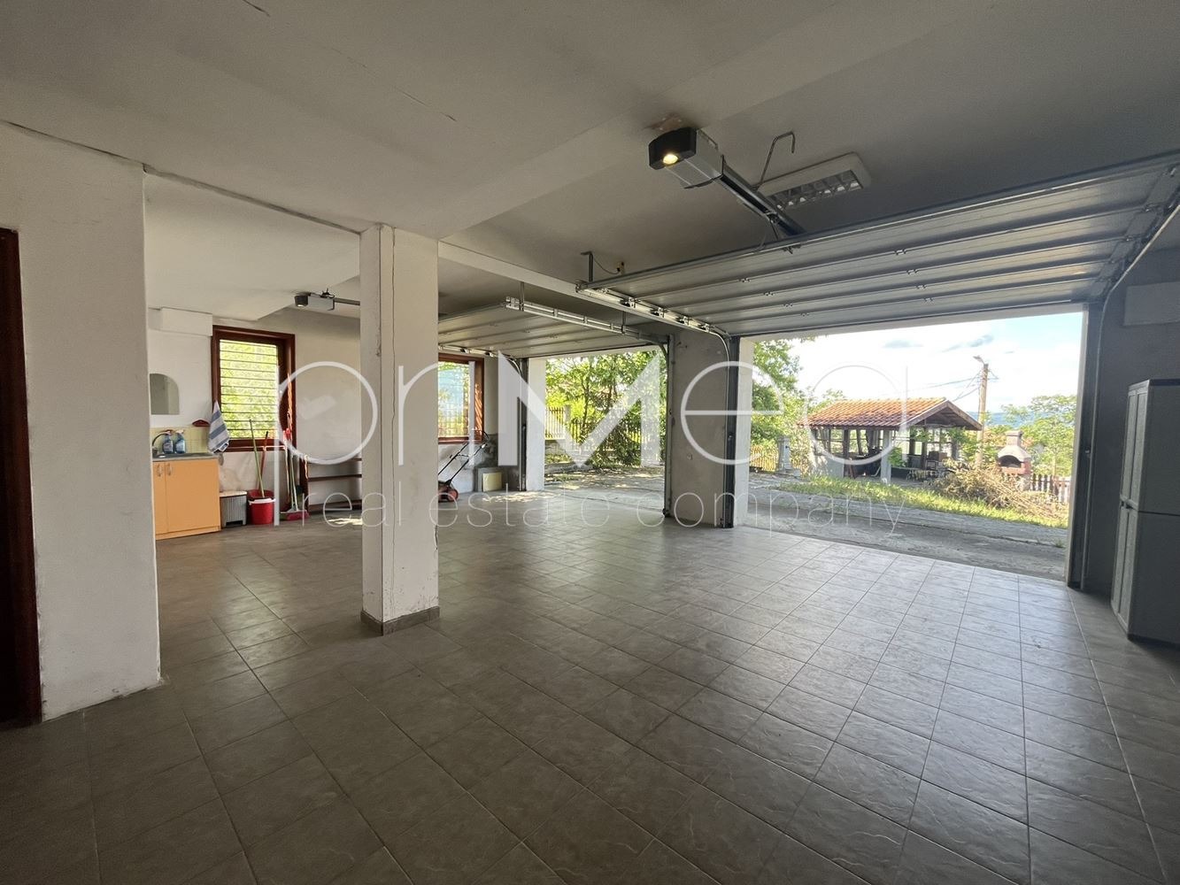 В двора има две барбекю зони, постройка за инструменти, множество плодни дръвчета. Изграден е навес за паркомясто в горната част на парцела, където има и втори самостоятелен достъп до имота.