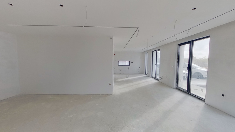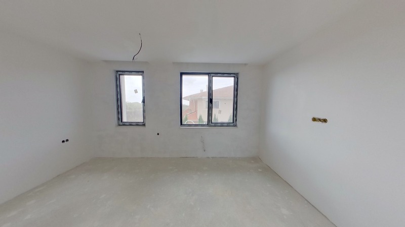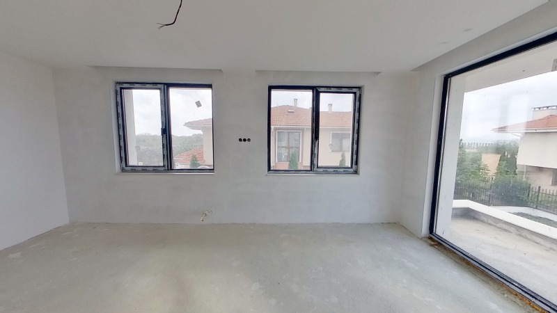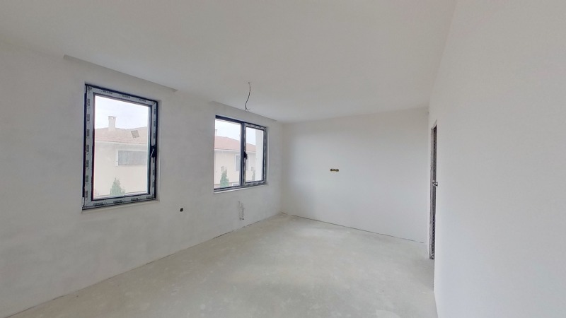 Къщата е изградена с нови, качествени и съвремени материали, широки френски прозорци с висок клас дограма, входна врата Hоrmann.