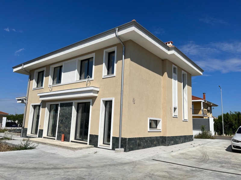 Примеа недвижими имоти предлага за продажба нова двуетажна къща в местност Лахана, на метри от плажа. Този елегантен имот е пример за функционално организирано разпределение с мисъл за комфорта и естетиката на дома. Интериорът е с прави линии, максимално изчистен, с висико тавани, които предават усещане за повече пространство.