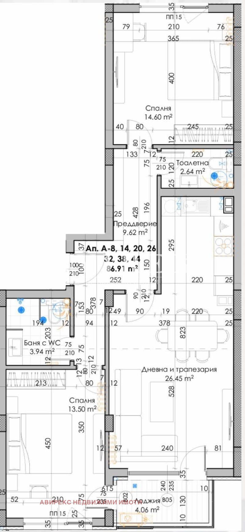 🔑 Разпределение: хол + кухня, 2 спални, баня с тоалетна, отделна тоалетна, тераса
