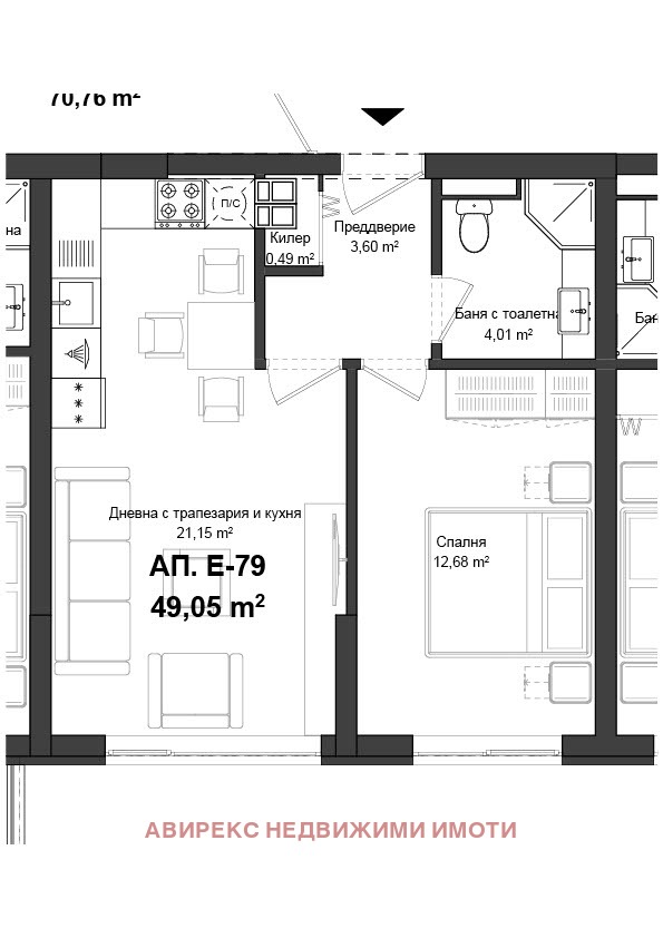 ЗАСТРОЕНА ПЛОЩ 49,05 кв.м