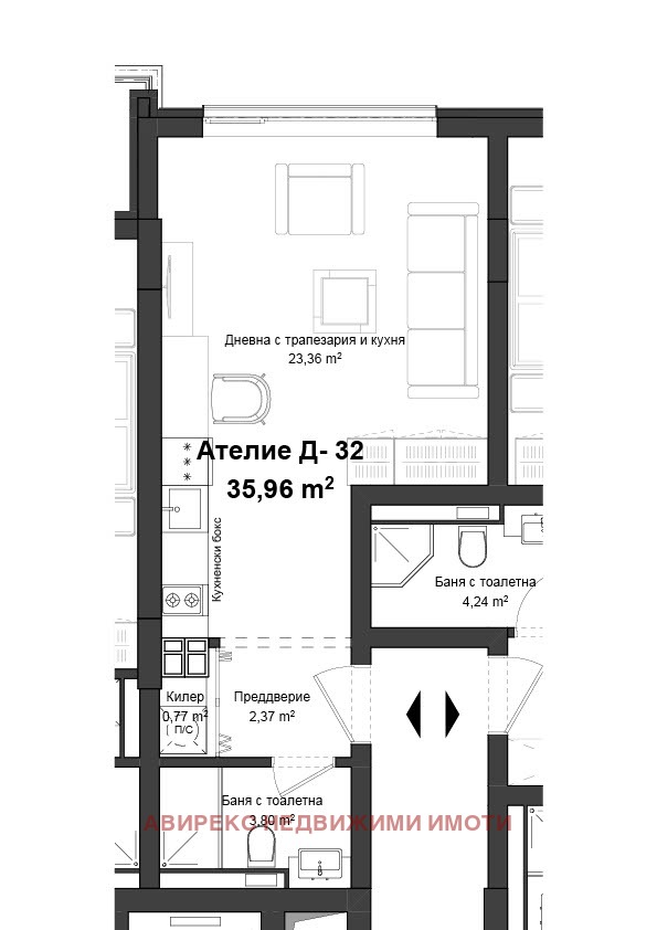 ЗАСТРОЕНА ПЛОЩ 35,96 кв.м