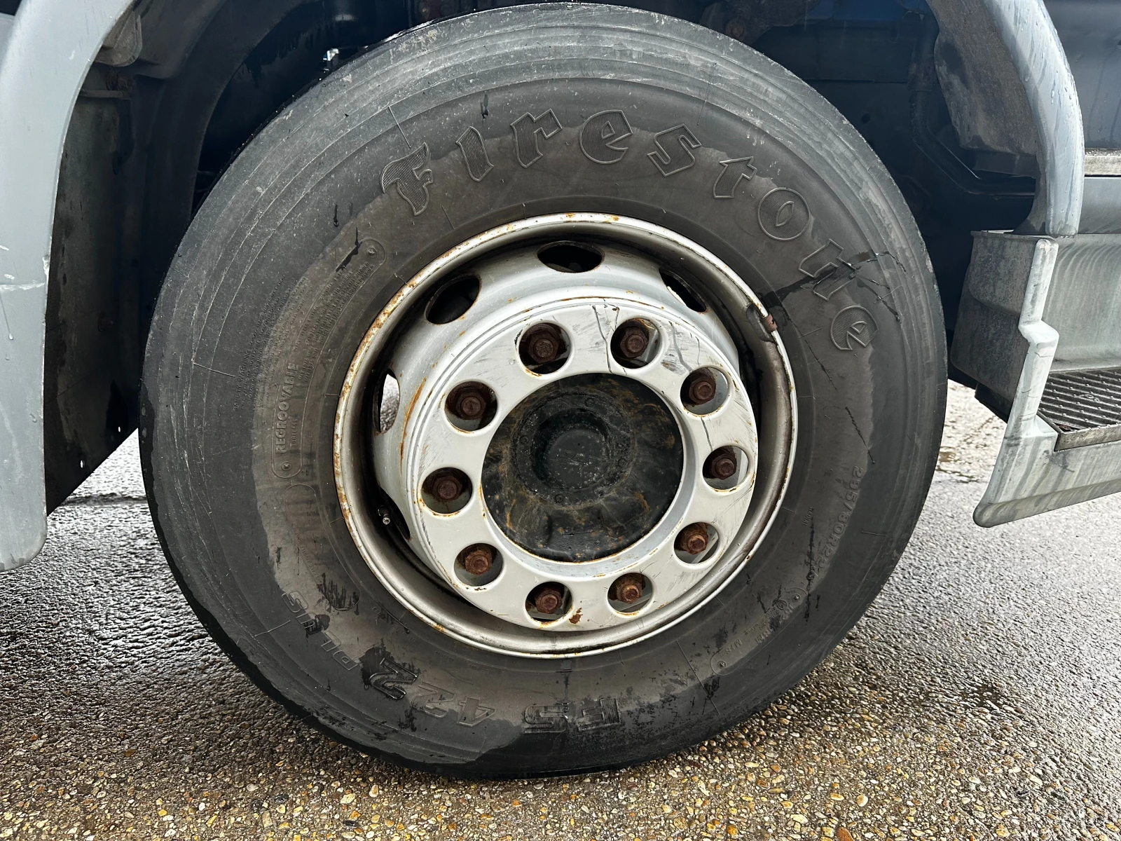 Товарен Автомобил с кран ДАФ LF 55, 250 , Дата на първа регистрация 28. 01. 2005г. , Собствено тегло 9350кг , Товароносимост - 8575кг, Размер на гумите -295/80 R 22. 5, Междуосие - 5350мм , Размери 8050/2550/3700 , Обем на двигателя 6690 куб. см , Номинална мощност на двигателя с вътрешно горене - 182kW , Скоростна кутия -механична , Kран - АТLAS 120. 2 E - A 4 L