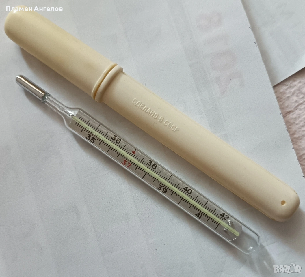 Руски, Съветски живачен термометър за измерване на телесна температура от епохата на Съветския съюз СССР. Високо качество и здравина. Работи точно, бързо, безупречно. Тестван, в отлично състояние. Не е работен с него, само по кутийката се вижда следи от годините.
