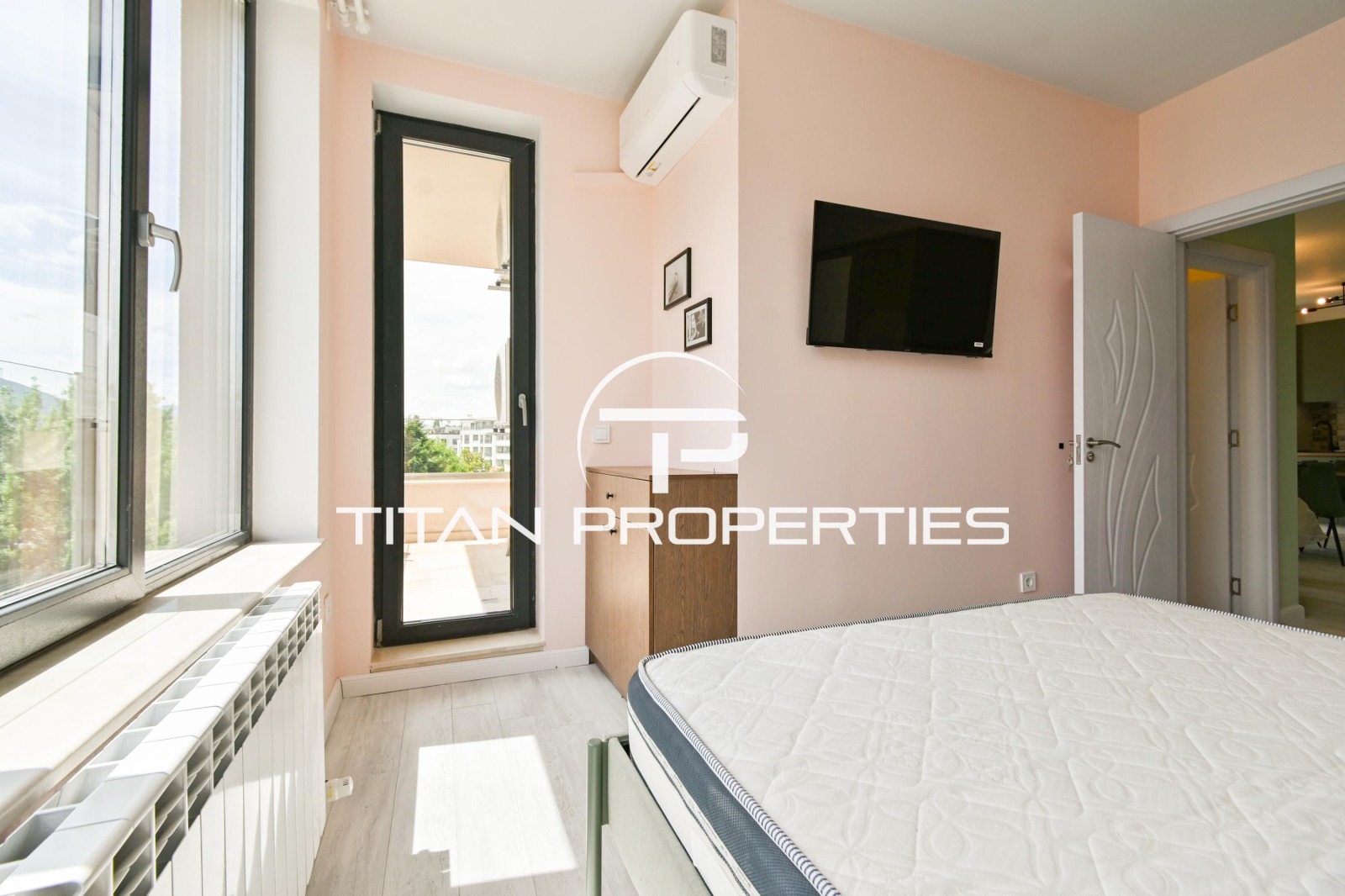 Титан Пропъртис - офис Младост с радост предлага на Вашето внимание тристаен апартамент под наем в кв. Кръстова вада, София. Жилището с площ 86 кв.м. се намира на 4-ти етаж от общо 5 в нова жилищна сграда. Разпределението включва входно антре, дрешник, хол с кухненски бокс, две отделни стаи, баня с тоалетна, отделна тоалетна и две тераси. Апартаментът е обзаведен.