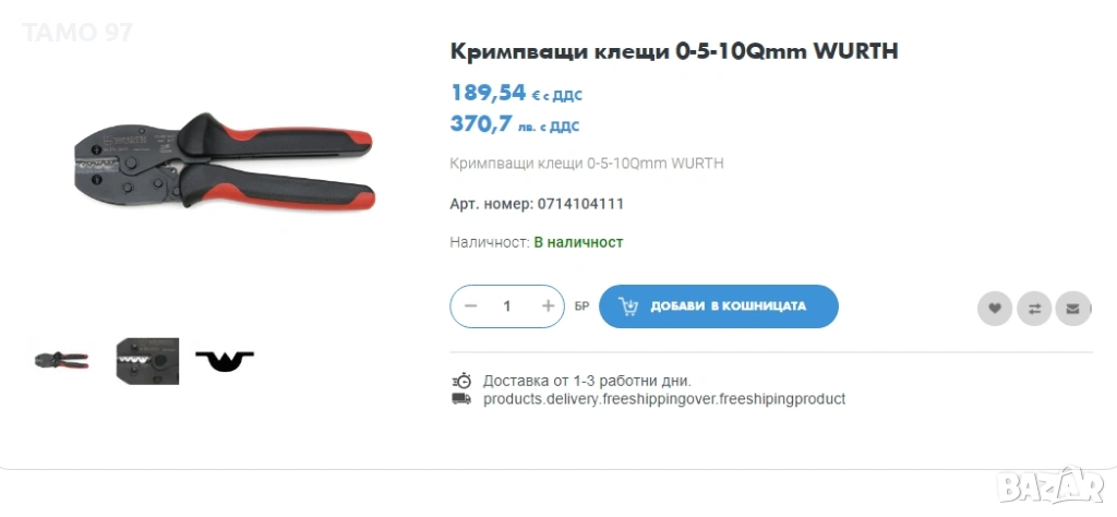 Продавам професионални кримпклещи на Вюрт за пресоване на кабелни накрайници с капацитет на пресоване от 0,5 - 10.0mm². Клещите са като нови, както се вижда на снимките използвани малко и функционират без забележки. Оригинално немско производство внос от Франция. Пращаме с опция преглед и тест с куриерска фирма еконт може и лично предаване за гр. Шумен.