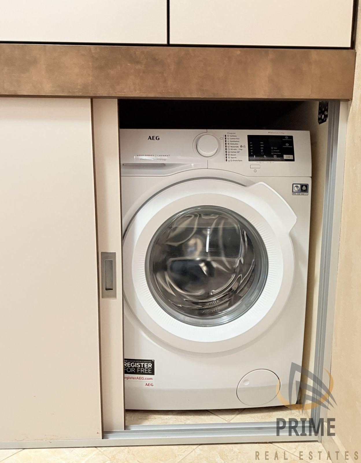 РАЗПРЕДЕЛЕНИЕ: Коридор с ниша за пералня и сушилня, отделен хол подходящ за спане, кухня с трапезария, спалня, баня с тоалетна и две тераси.