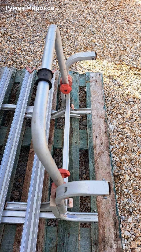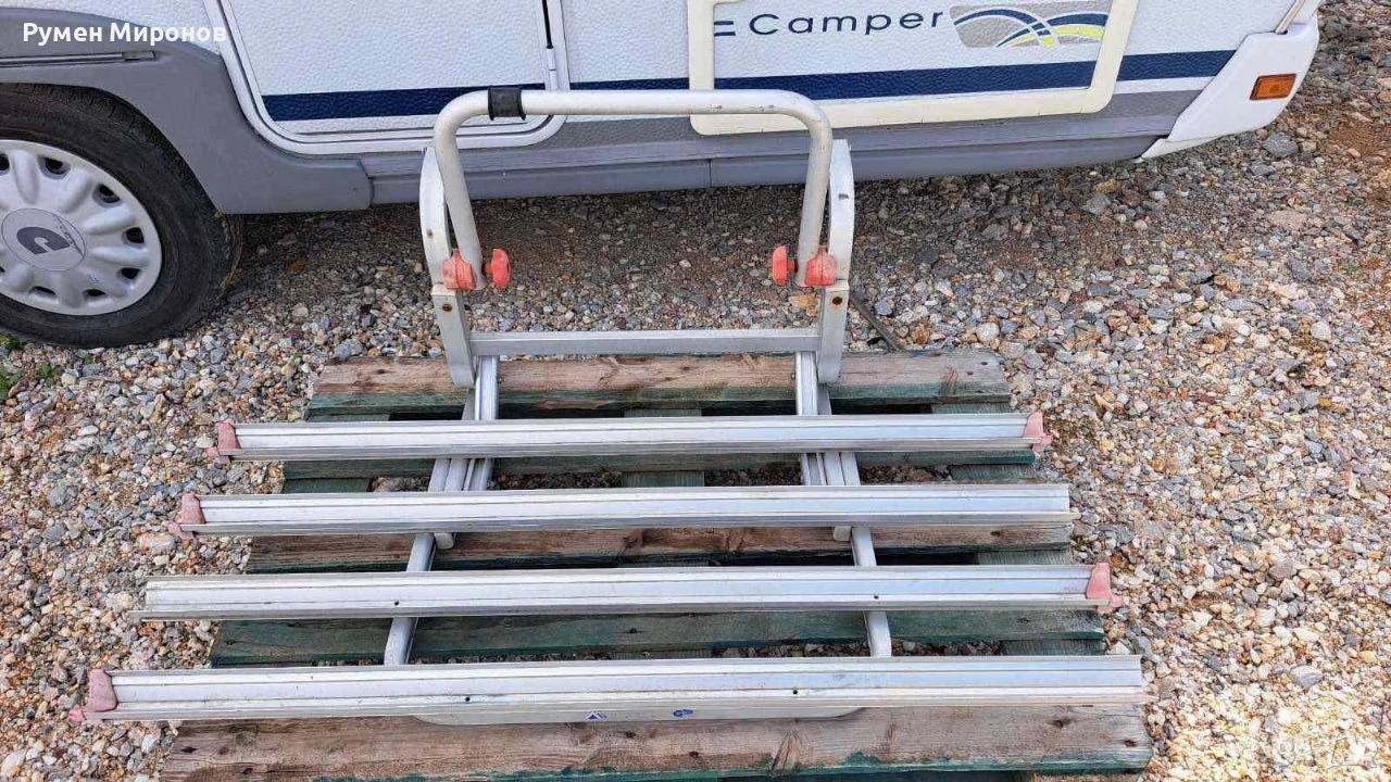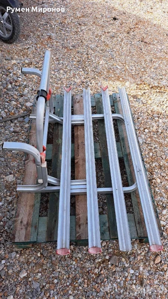продавам употребяван сгъваем алуминиев багажник за четири велосипеда. Размери на снимките. Цена 170 евро.
