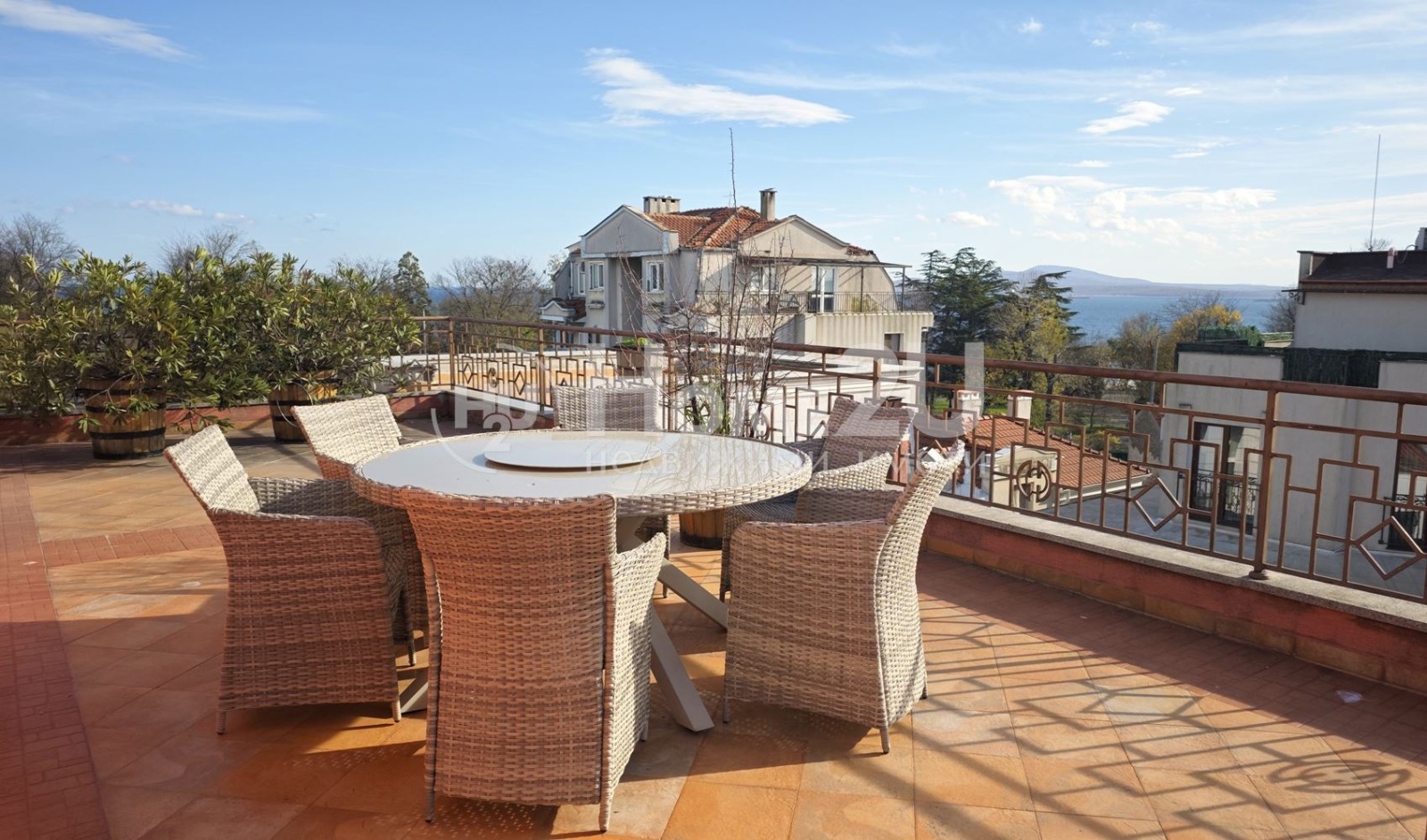 -Допълнителна северна тераса - 100 кв.м (Не е включена в общата квадратура от 353 кв.м.), подходяща за лоундж зона, барбекю или джакузи.