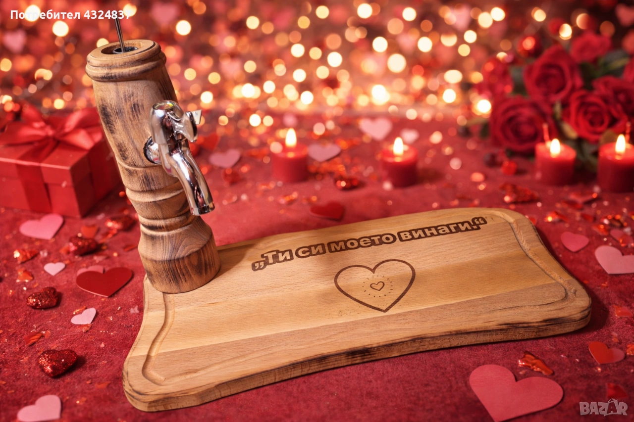 Ръчно изработена дървена чешма с персонализиран надпис – перфектна за Свети Валентин, годишнина или просто „обичам те“.