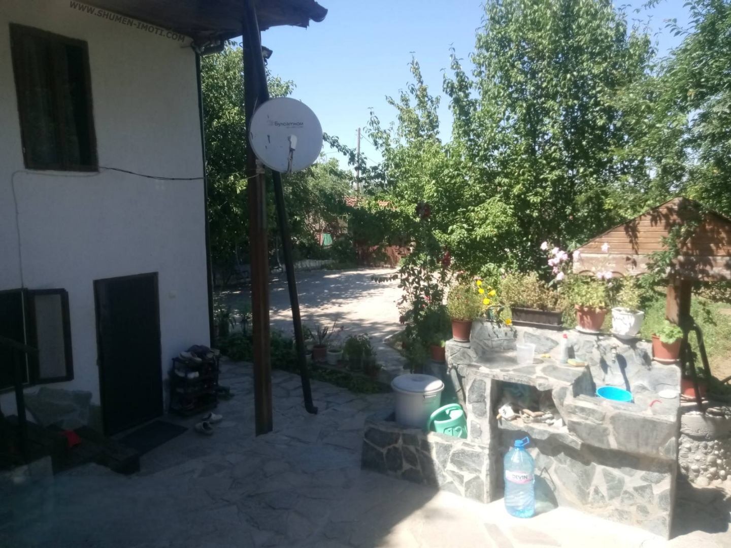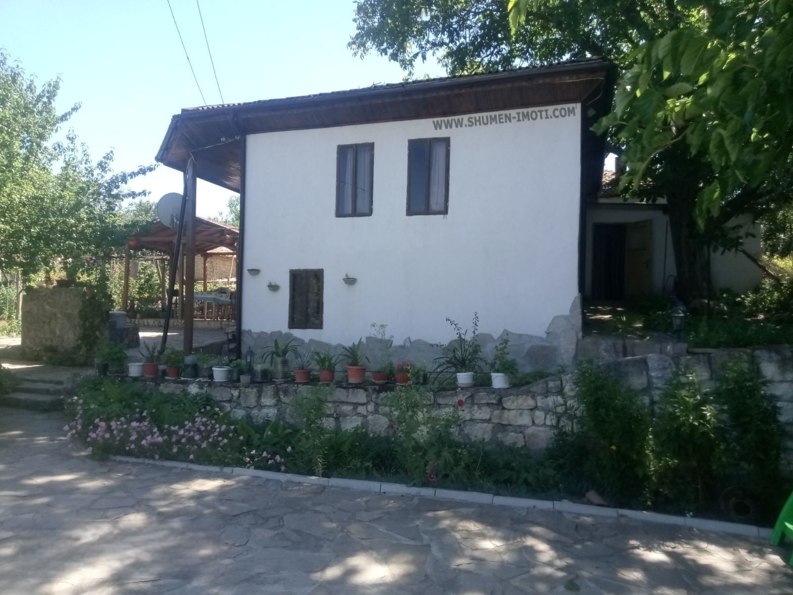 каменни плочи, зелени площи, действащ кладенец, външна чешма, беседка за отдих и джакузи. Къщата е с разгъната застроена площ от 78 кв.м, разпределена на два етажа първият включва всекидневна с кухня, баня и тоалетна, а на втория етаж са разположени две спални, от които се излиза на просторна веранда. Вътрешното пространство е реновирано с изцяло нови подови настилки от естествено дърво и дограма. Подменени са както дървената конструкция, така и електрическата инсталация, външна изолация, което гарантира надеждност и съвременен стандарт на обитаване. Към имота има изба и допълнителна постройка с възможност за лятна кухня, работилница или склад. Това е дом, който съчетава очарованието на възрожденската архитектура с удобствата на модерния живот идеален както за постоянно живеене, така и за уютен отдих сред природа. За огледи и допълнителна информация, свържете се с Агенция ШуменЪ.- 0878442703