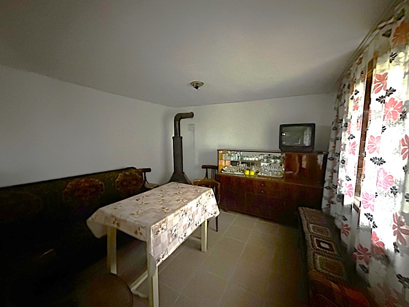 🌀Разпределението е следното: на първия етаж са разположени кухня и всекидневна, а вторият етаж представлява една просторна спалня. Към имота има и допълнителна постройка, оборудвана като лятна кухня с тоалетен възел голямо удобство при работа в градината или при посрещане на гости. Важно предимство е, че покривът на вилата е нов (ремонтиран). Имотът се отличава и с прекрасна гледка към Язовир Тича.