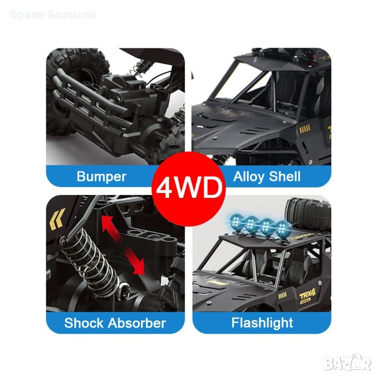 Голям офроуд джип с дистанционно управление, 4х4 TRX4.