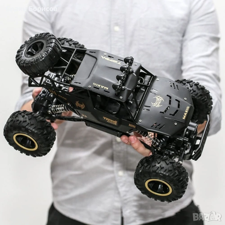 Голям джип с дистанционно за офроуд каране, 4х4 задвижване, с големи гуми и амортисьори