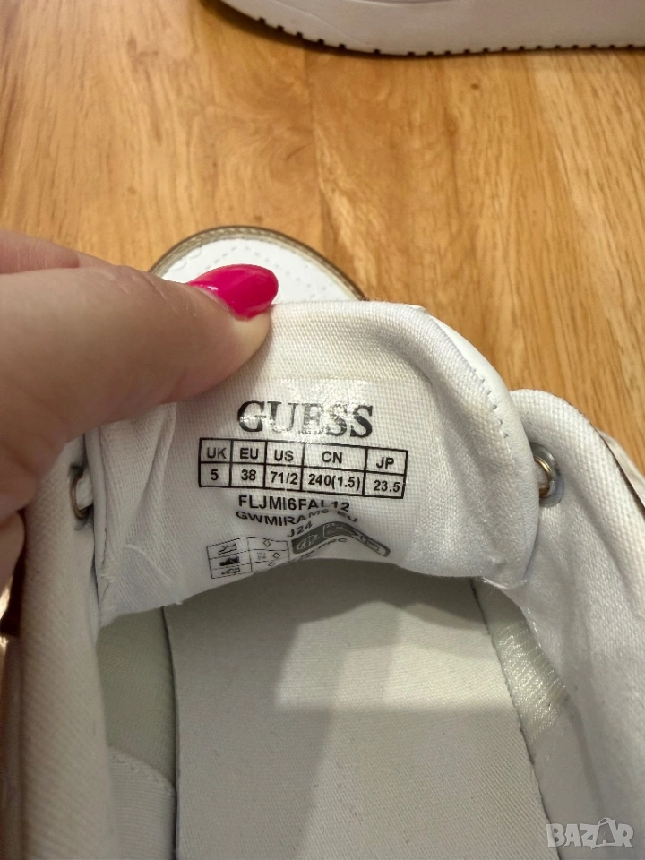Продавам оригинални дамски кецове на марката Guess. Кецовете са 100% оригинални, закупени от магазин представител на марката. Изключително запазени, тъй като са носени не повече от два-три пъти. Размер 38. Цена 50 евро.