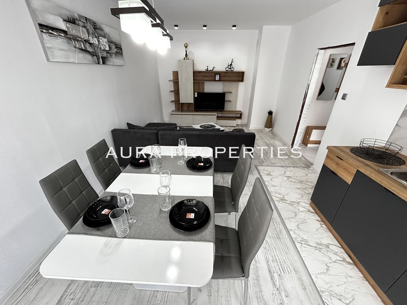 AURA Properties предлага на Вашето внимание 2-стаен, напълно обзаведен апартамент, находящ се в жк.'Орел'- град Разград. Жилището се намира на 4-ти жилищен етаж и е с площ от 52кв.м. Апартаментът има следното разпределение: входно антре, просторна всекидневна с кухненски бокс и трапезария, спалня, баня с тоалетна и тераса. Имотът е със сменена дограма, вътрешна изолация. Към апартамента има и прилежащо избено помещение.