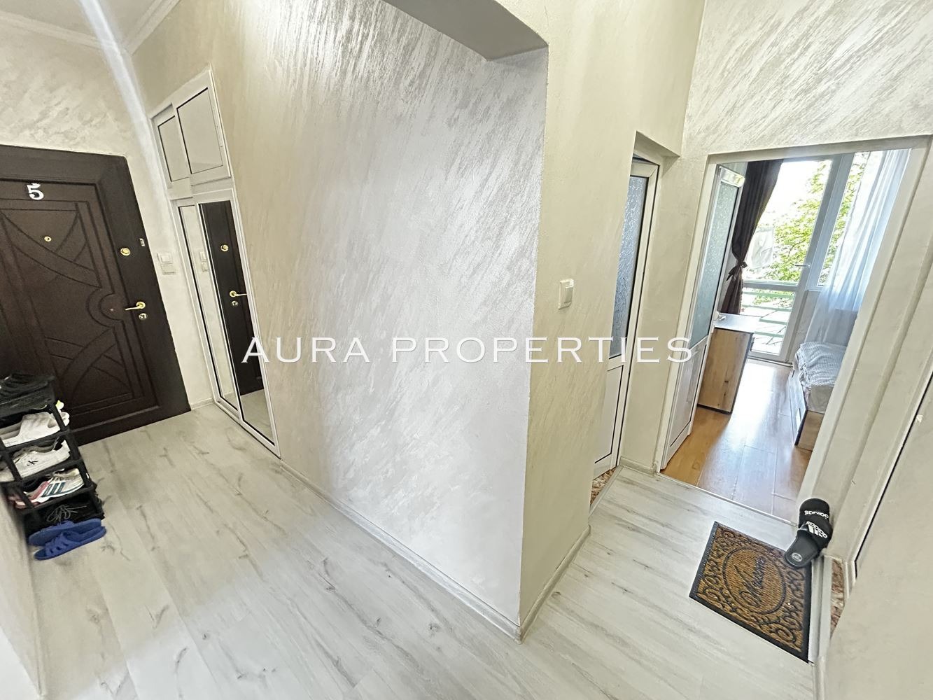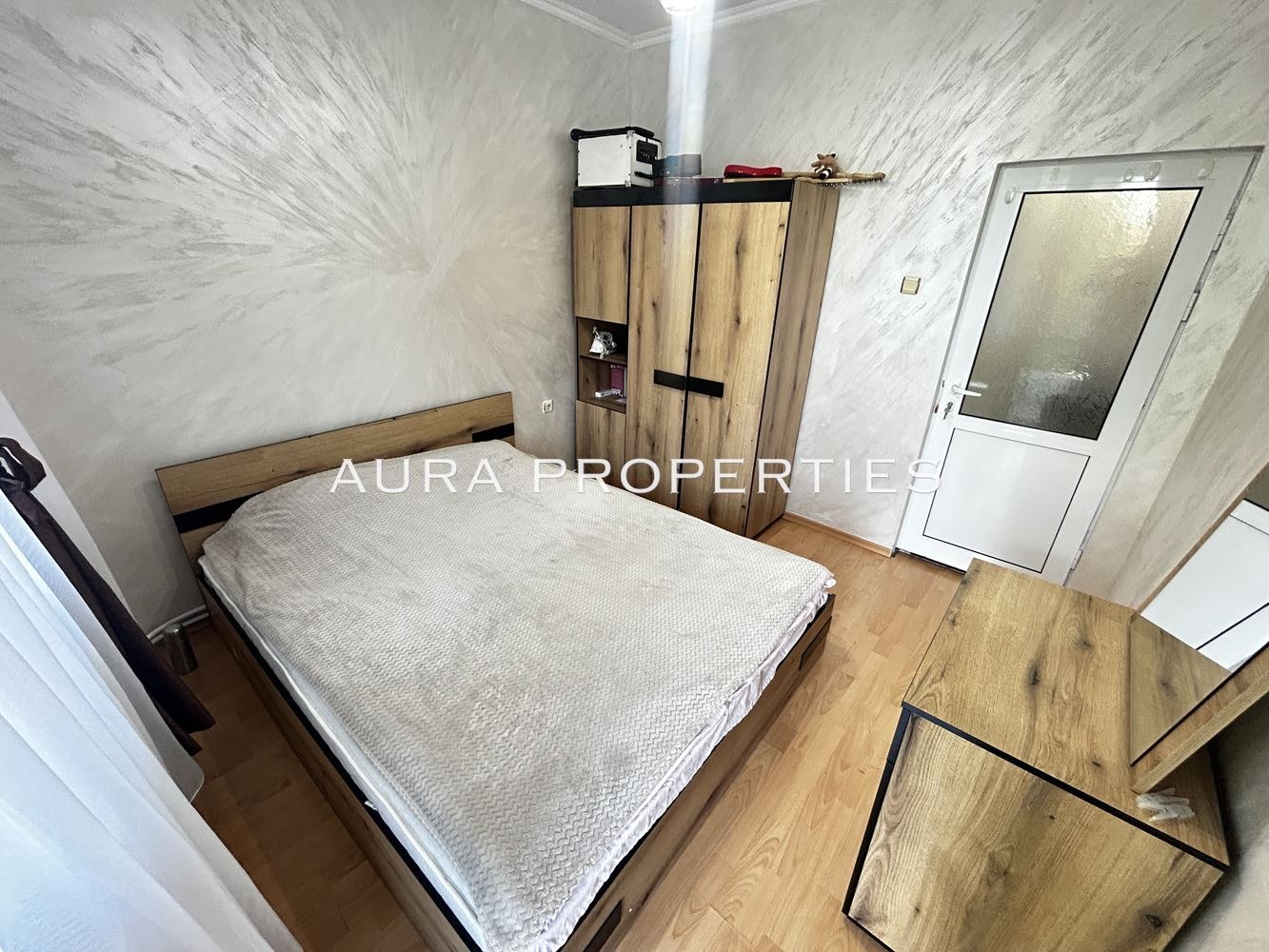 AURA Properties предлага на Вашето внимание тристаен напълно обзаведен тухлен апартамент, находящ се в центъра на гр.Разград. Жилището се намира на 1-ви жилищен висок етаж и е с площ от 75кв.м. Състои се от входно антре, просторна всекидневна с кухненски бокс и трапезария, 2 спални, баня с тоалетна и тереса. Отоплението на имота се извършва на климатик. . Имотът се продава с прилежащо избено помещение.