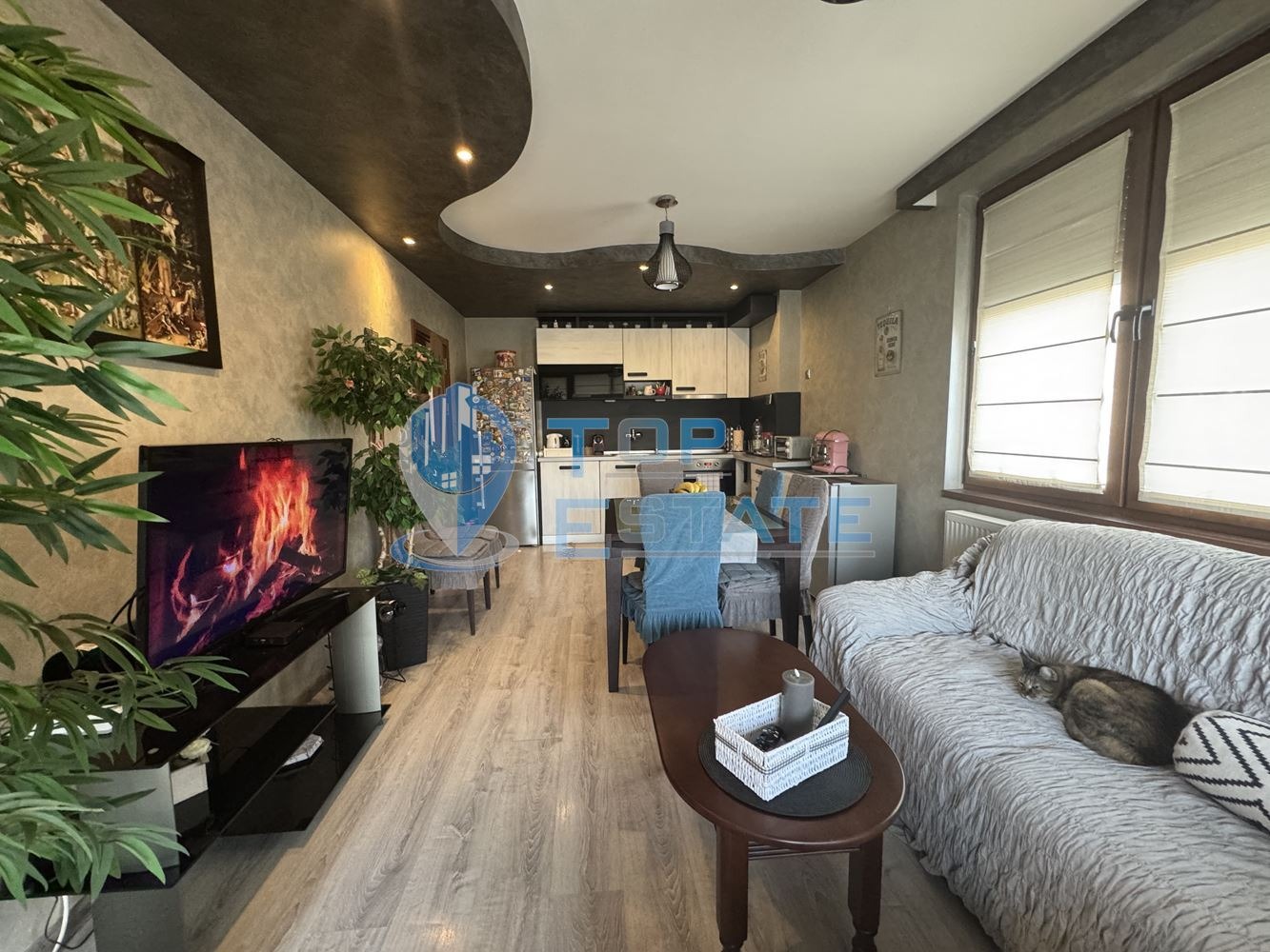 360 Виртуална обиколка на имота! Топ Естейт Недвижими имоти Ви предлага тристаен ремонтиран и газифициран, обзаведен апартамент в широкия центъра на град Велико Търново. Жилището е разположено на трети етаж от седеметажна тухлена сграда с асансьор и много добре поддържани общи части. Апартаментът е с площ от 81,82 кв. м, разпределени между две спални, просторна всекидневна с кухненски бокс, баня с тоалетна, мокро помещение, тераса и коридор, както и 1,8513% идеални части от общите части на сградата. Имотът е ремонтиран и състоянието му е много добро, като щорите са ден и нощ, мазилката е венециянска, дограмата е ПВЦ 'Златен дъб', входната врата е блиндирана, подовата настилка е ламинат и гранитогрес, а уредите са висок клас. В жилището отоплението и охлаждането са решени чрез газ и климатик. Апартаментът е с изложение изток и се продава с наличното обзавеждане и оборудване. Местоположението на имота е много добро, като в непосредствена близост се намират хранителни магазини, училища, детски градини, градски транспорт и множество други удобства. Номер на оферта 3443. We speak English and German.