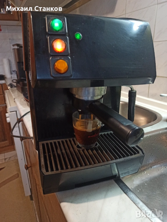 Кафе машина Саеко Меджик с ръкохватка крема диск работи перфектно и прави супер кафе с каймак