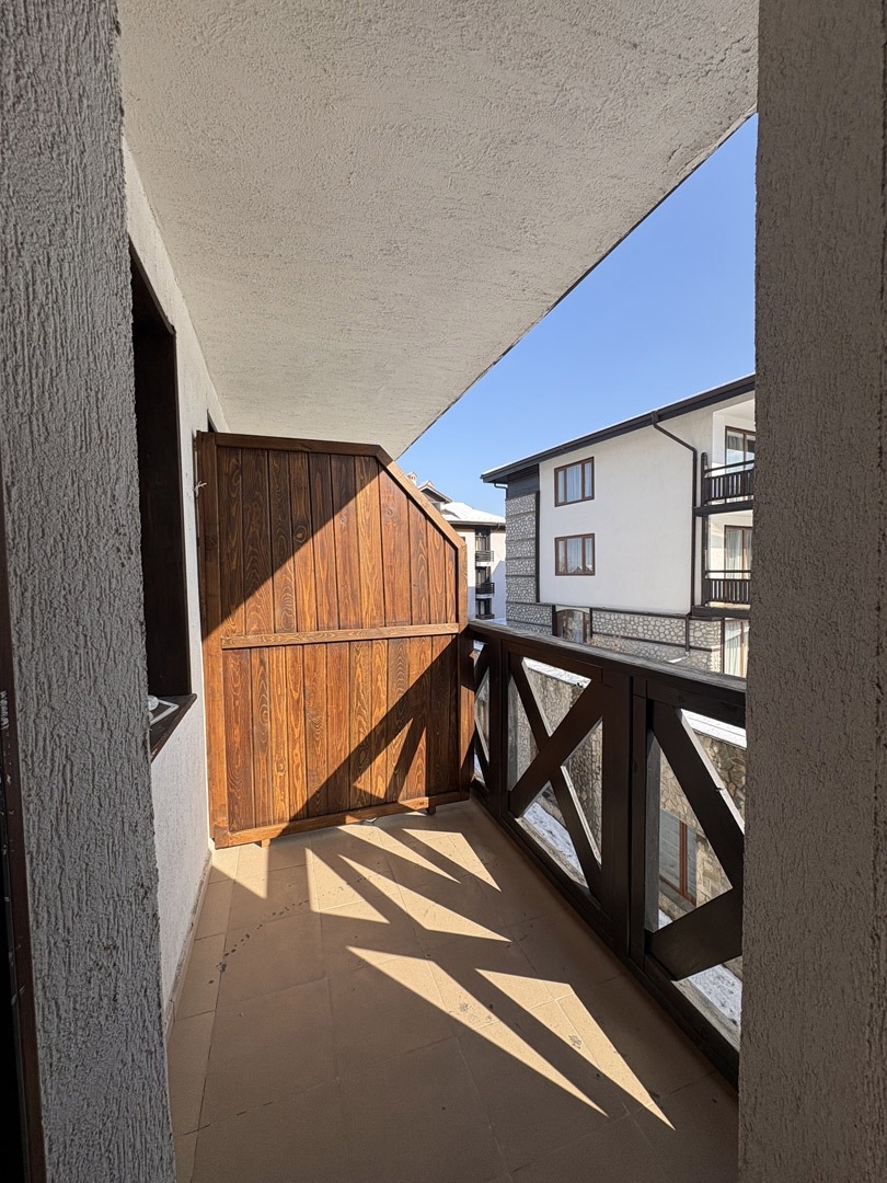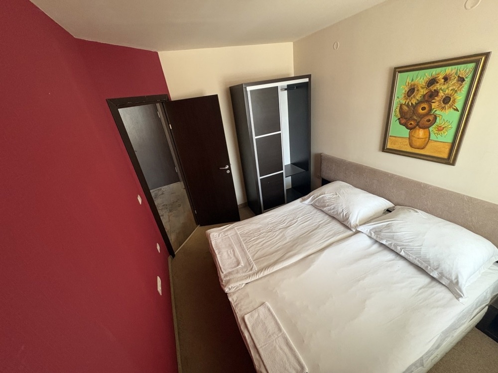 От хола се излиза на балкон,който има гледка към планината.Спалнята еобзаведена с двойно легло с две нощни шкафчетаи гардероб.