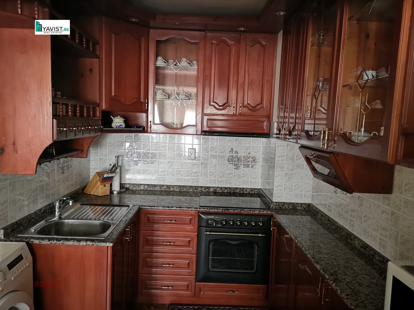 Кухня: Пълно вградено оборудване - фурна, котлони, аспиратор, хладилник-фризер и автоматична пералня.