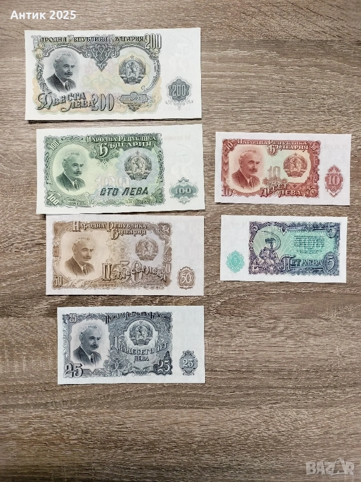 Всички банкноти са с портрет на Георги Димитров и класически социалистически дизайн. Рядък комплект в такова отлично състояние, като особено ценни са номиналите 100 и 200 лева.
