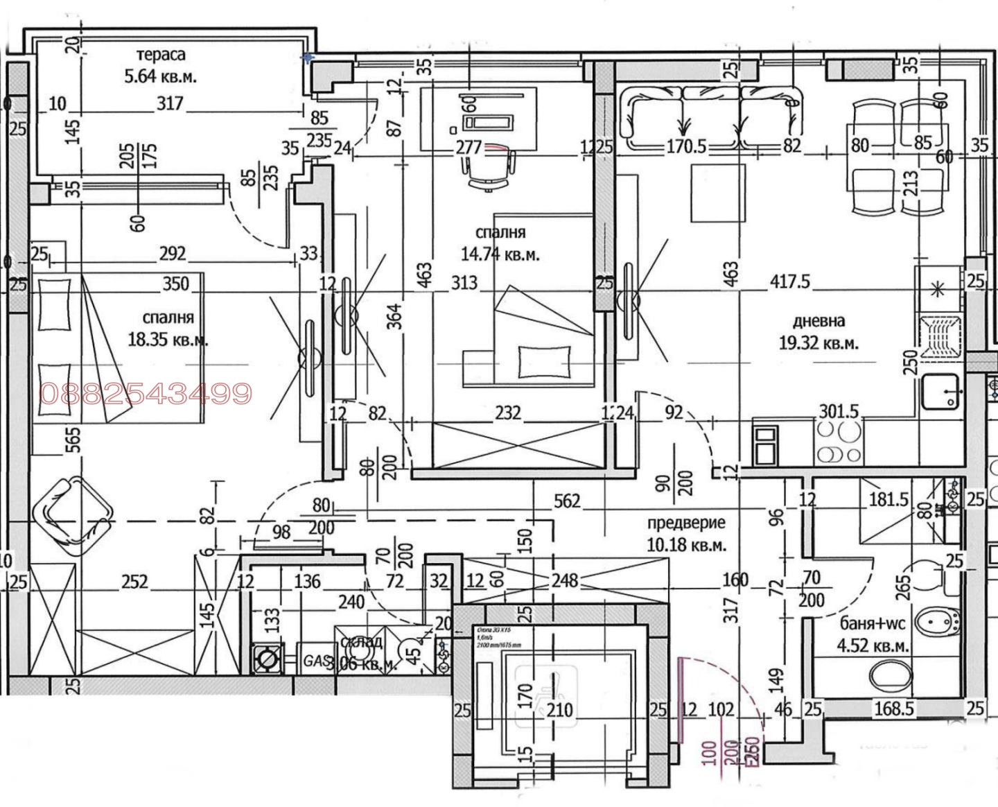 🛋️ Дневна с кухненски бокс 19.3 кв.м.