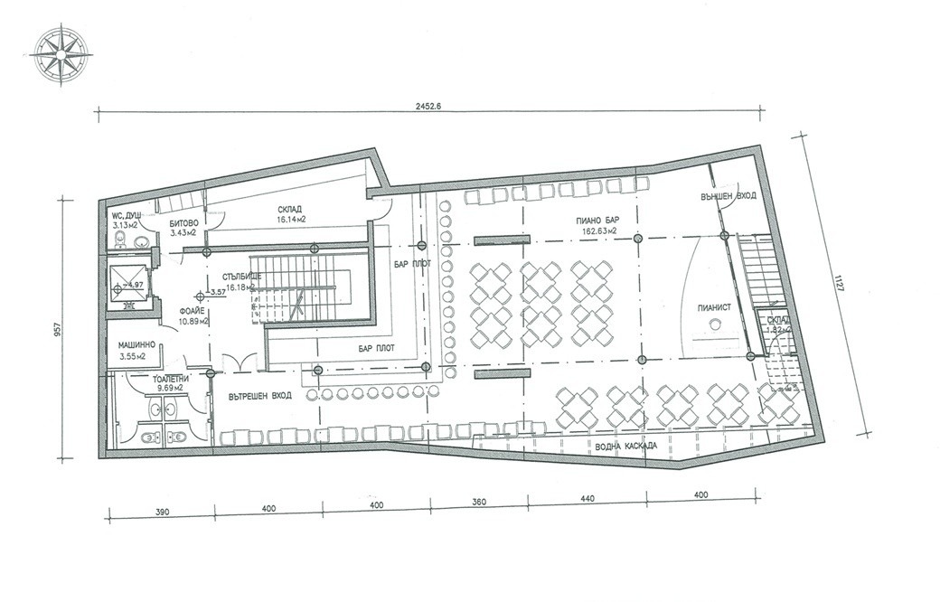 Сутеренно ниво / 301.67 кв.м / функционирал като пиано бар с артистичен дух, сцена и санитарни помещения