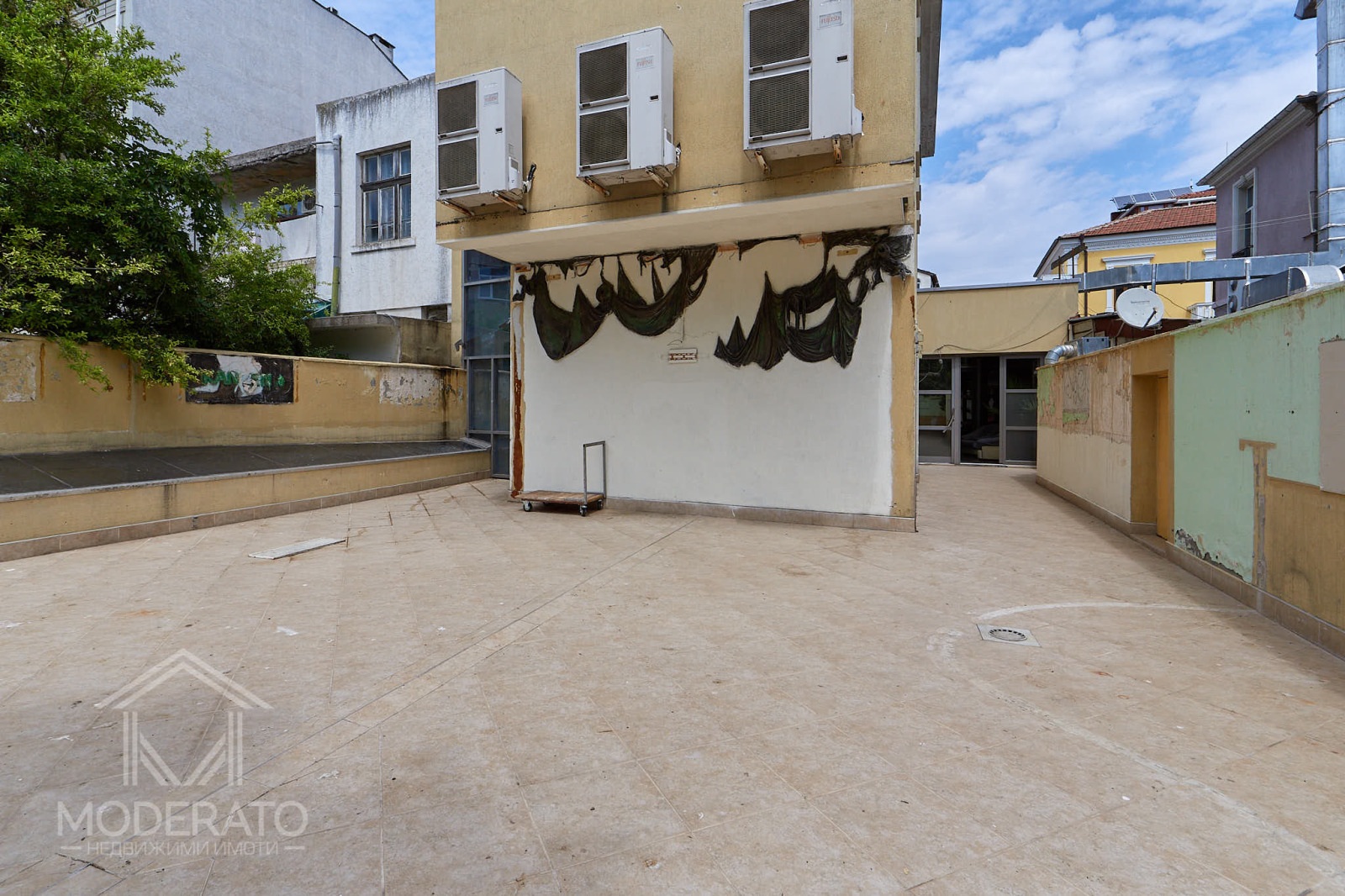 Открита тераса/вътрешен двор /68.93 кв.м / изключително рядко предимство за центъра на Бургас подходяща за външни маси или артистично озеленяване