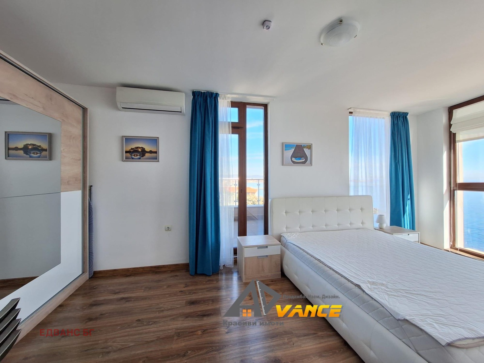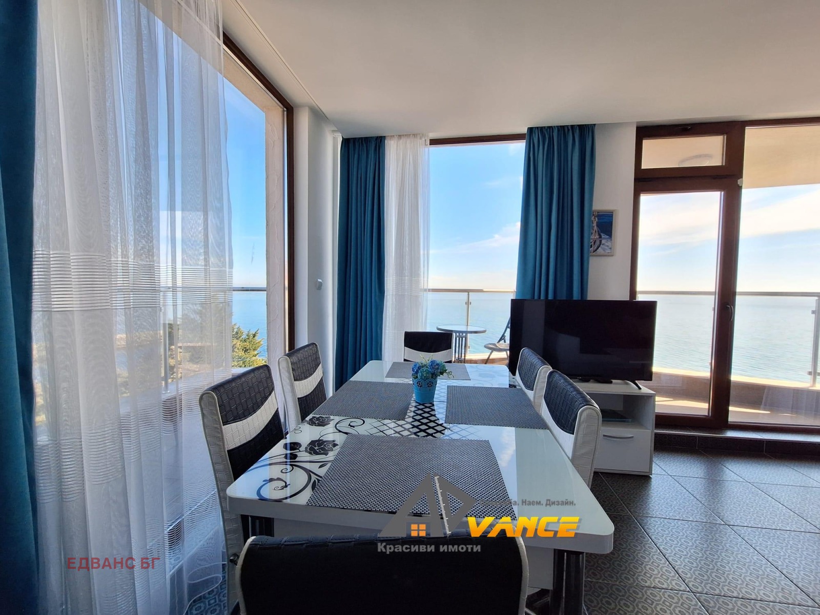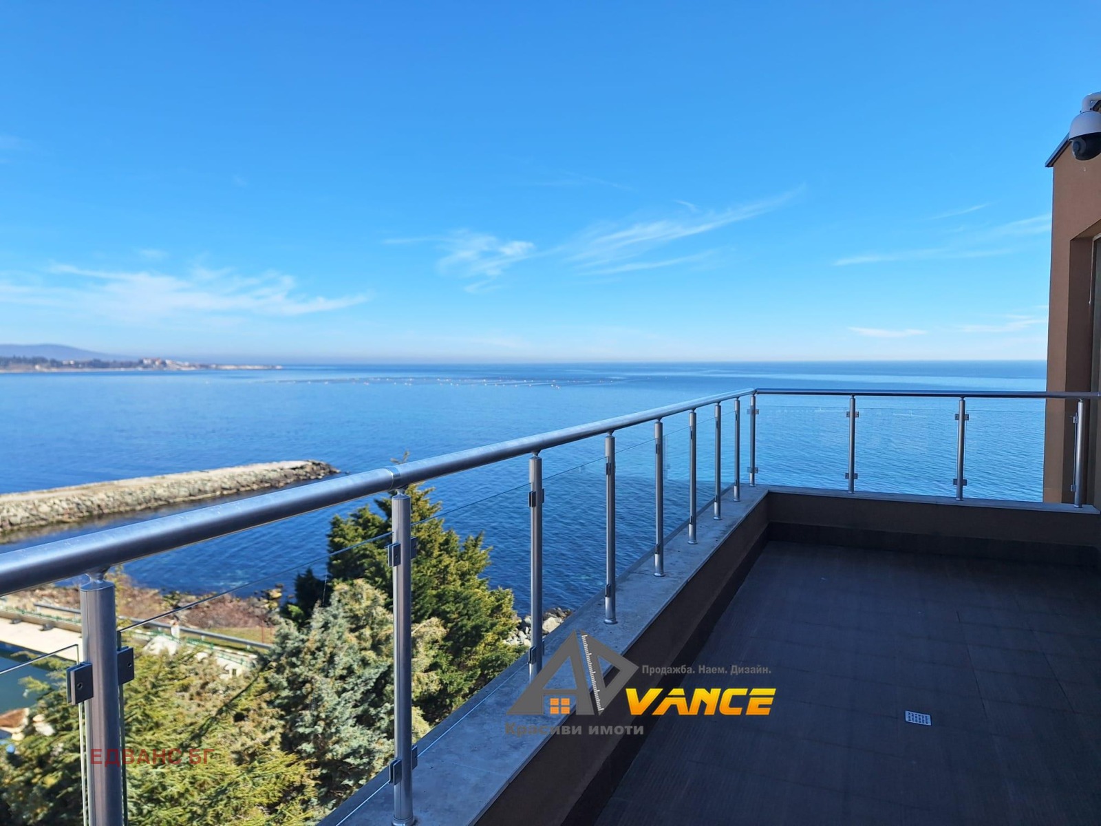 От прозорците и две просторни тераси се разкрива живописна панорамна гледка към морето, предоставяща възможност да се насладите на морски въздух и неповторими изгреви и залези.