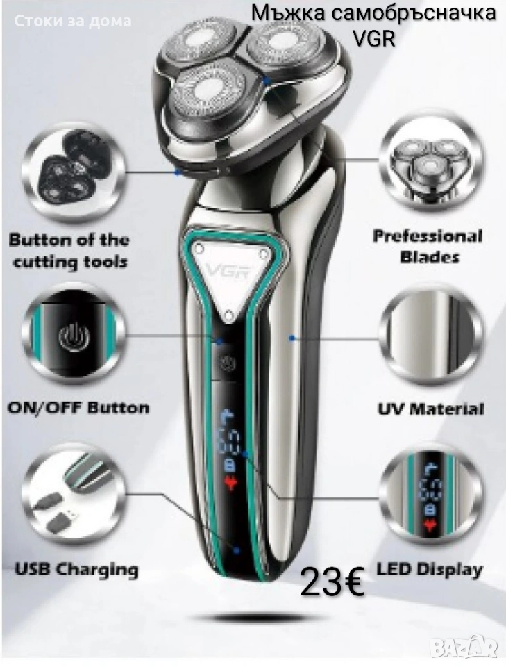Мъжка самобръсначка VGR, Водоустойчива, USB зареждане