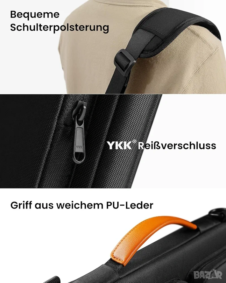 * Премиум компоненти: Използвани са световноизвестните YKK® ципове за гладко движение и дълготрайност, както и ергономична дръжка от мека PU кожа за комфортен захват.