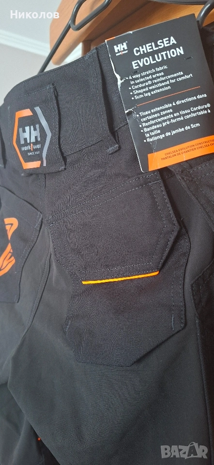Панталонът Chelsea Evolution Construction ви дава най-доброто от два свята - издръжливост и свобода на движение. 4-посочно разтегливата материя осигурява неограничено движение за удобно носене през целия ден. Нашата легендарна памучна материя Chelsea допълва разтегливостта с допълнителна структура и издръжливост, позволявайки на панталона да се справя и с най-трудните задачи. Модерната кройка, подобрените решения за джобове и артикулираните дизайнерски линии правят този панталон вашият най-добър партньор. Характеристики - 4-посочно разтеглива материя. - Висящи джобове от Cordura с двойно подплатено дъно и найлонова лента за издръжливост. - Джобове за ръце. - Примки за държач за чук от двете страни. - Оформена талия за подобрен комфорт. - Широка гайка за колан в центъра на гърба за допълнителна стабилност и здравина. - Задни джобове. - Вдлъбнатина в чатала за свобода на движение. - Метални копчета, покрити с пластмаса. - Джоб на бедрото със закопчалка и няколко отделения. - Примка за лична карта. - Джоб за линийка от подсилена материя Cordura. - Подсилена материя Cordura на коленете. - Артикулирани колене за оптимална мобилност. - Джобове за наколенки, достъпни отвътре. - Позицията на наколенките може да се регулира с 5 см за оптимална мобилност. - Подсилване от кордура плат на долния подгъв. - Възможност за увеличаване на дължината на крачола с 5 см.