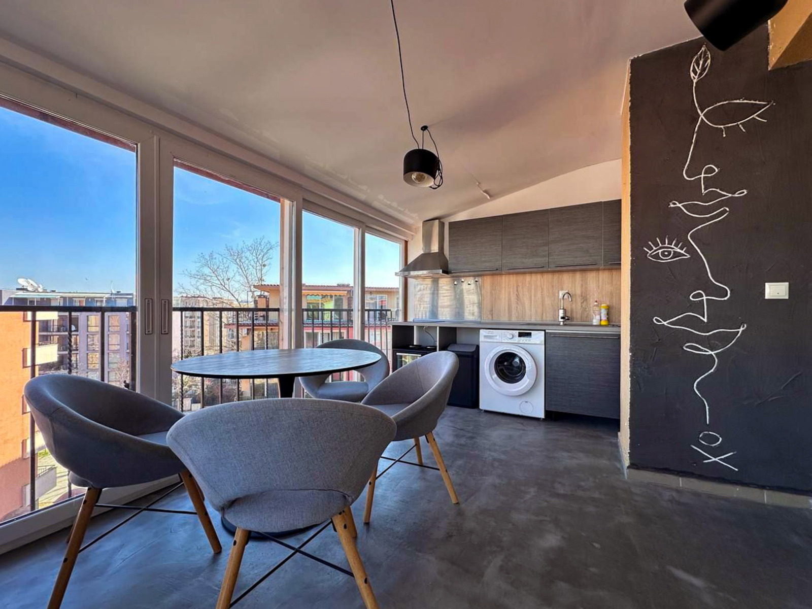 Специална оферта на супер цена! Този тристаен апартамент с площ от 111,8 квадратни метра на петия етаж с асансьор в комплекс Sunny View Central е истинска находка за тези, които ценят пространството и гледката. Две големи спални, всяка със самостоятелна баня и тераса, осигуряват уединение, а светлата всекидневна и кухнята се отварят към главната тераса с шезлонги и панорамна гледка към басейна и градините. Апартаментът е вече обзаведен, с климатик, пералня и фурна - всичко е готово за настаняване или отдаване под наем. Годишната наемна такса от 1344 евро си заслужава удобствата, а състоянието на апартамента означава, че няма да е необходимо да харчите и стотинка за ремонт.