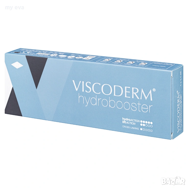 Viscoderm Hydrobooster е иновативен skin booster, създаден на основата на стабилизирана хиалуронова киселина, който комбинира интензивна хидратация с деликатен подмладяващ ефект, без да създава обем. Идеален е за фини линии и зони с активна мимика – като околоочния контур, устните и челото.