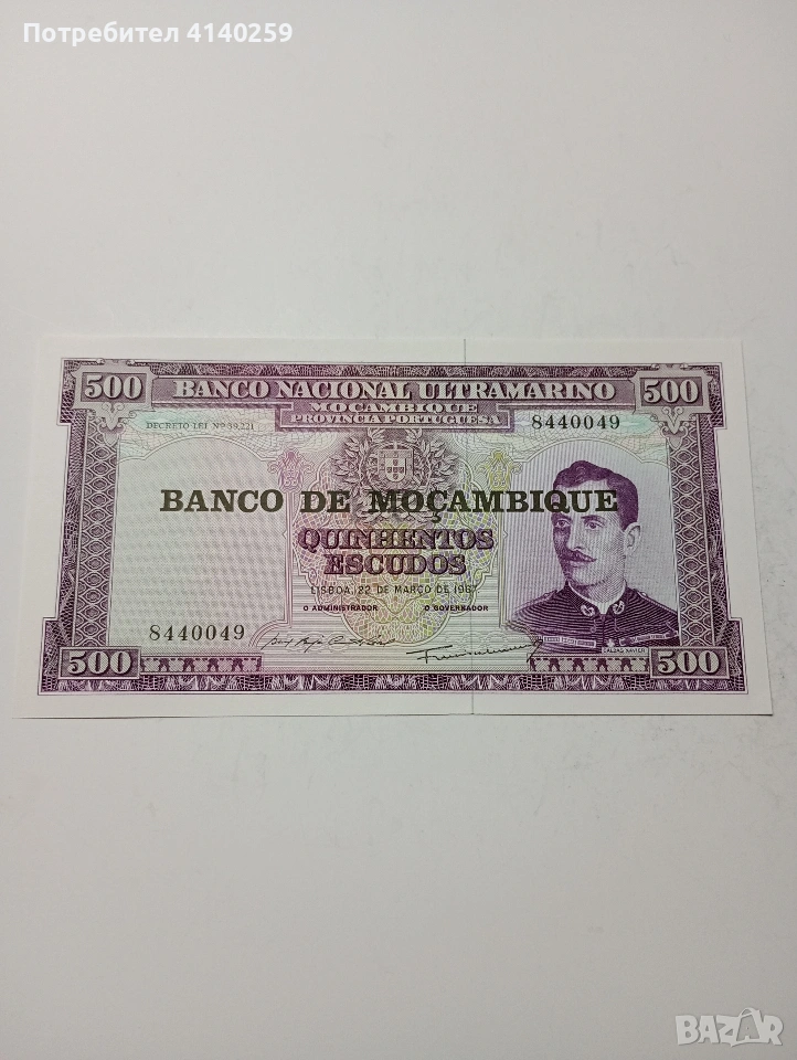 МОЗАМБИК БАНКНОТА 500 ЕСКУДО 1967 Г → Обява 53315909