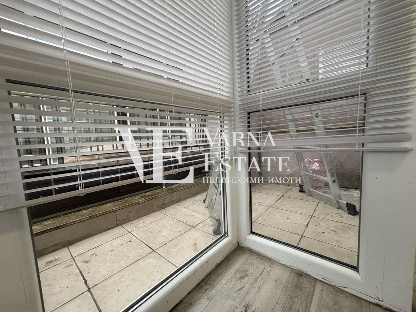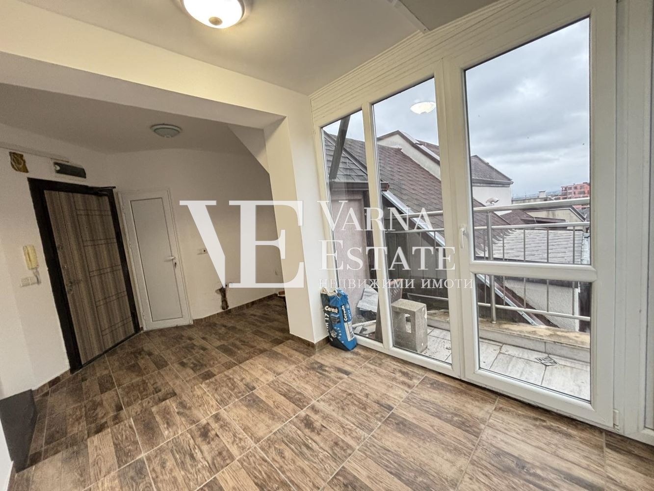 Варна Естейт предлага на Вашето внимание светъл и разчупен мезонет, който е разположен на пети и шести етаж от общо шест в тухлена сграда с асансьор, строителство 2020г. Жилището е с площ от 60 кв.м. и има следното разпределение: първо ниво: антре, една стая с две малки тераси, баня и тоалетна заедно, стълбище; второ ниво: две стаи, една голяма тераса и още три по-малки тераси. Първи етаж е с подово отопление, на втори етаж има чисто нов климатик. Обзавеждането се състои от гардероб, кухненски модул и шкафове, всичко е чисто ново и не е използвано, тъй като жилището не е било обитавано. Апартаментът е светъл и просторен. Има изградена Фотоволтаична система 5kwh, която захранва жилището с енергия .