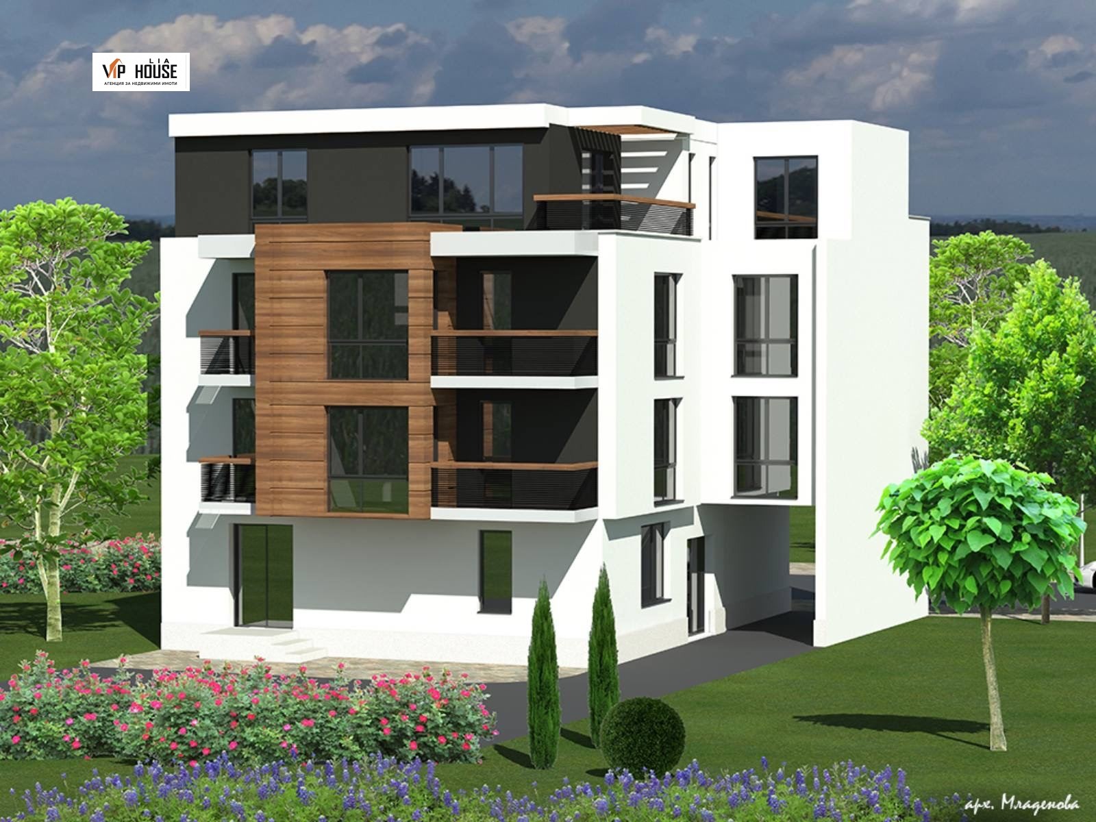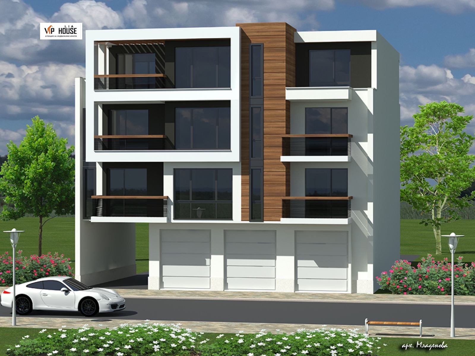 Апартаментът се намира на първи жилищен етаж в нова жилищна сграда в гр. Пазарджик. Районът е с тиха и спокойна жилищна среда, съчетаваща удобен достъп и комфорт за живеене. Сградата е с модерна архитектура и стилна фасада, изпълнена в светли тонове с тъмни и дървесни акценти, съгласно приложените визуализации. Към имота може да бъде закупен гараж при допълнително договаряне.