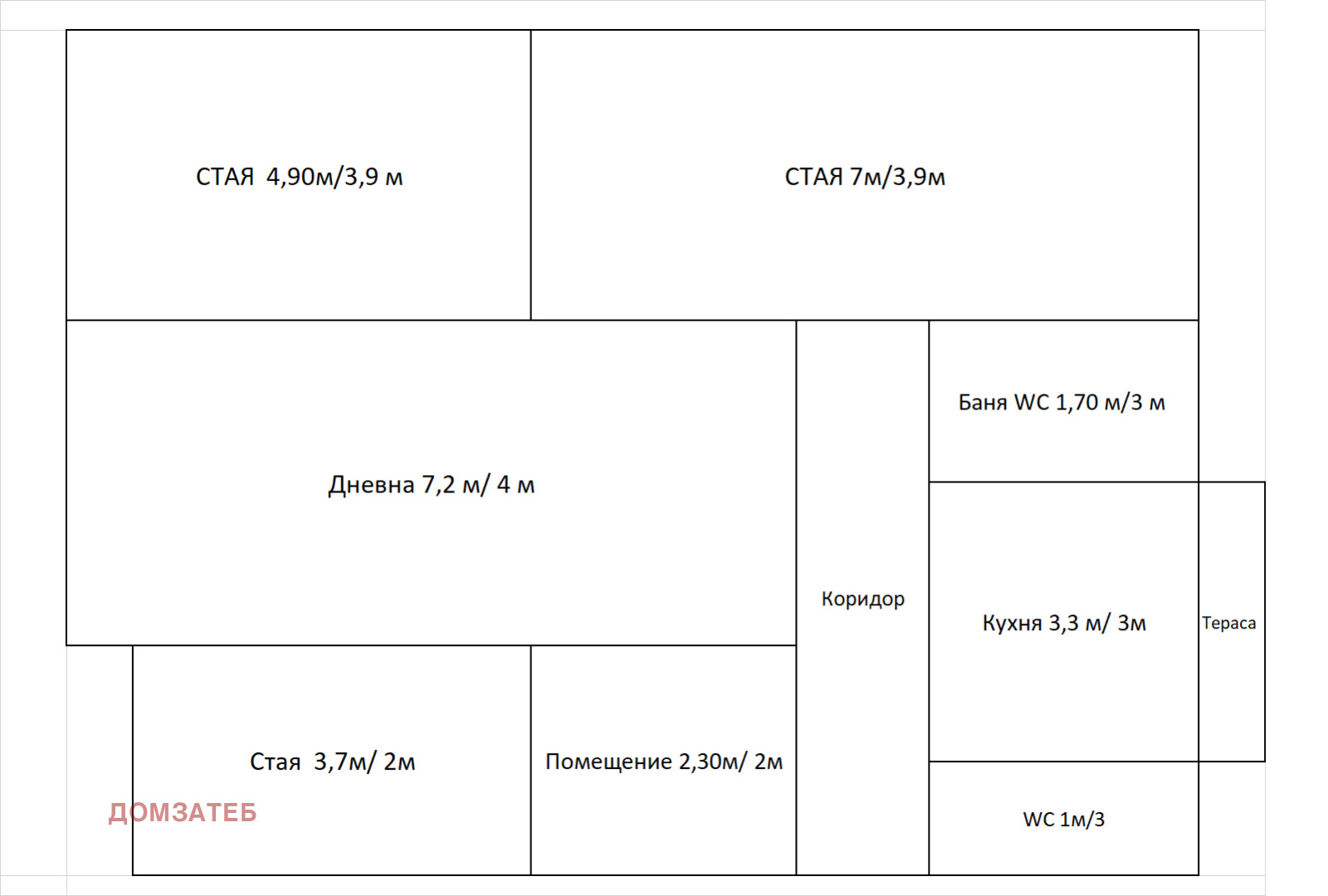За онагледяване на имота прилагам схема с размерите на светлата част на помещенията.