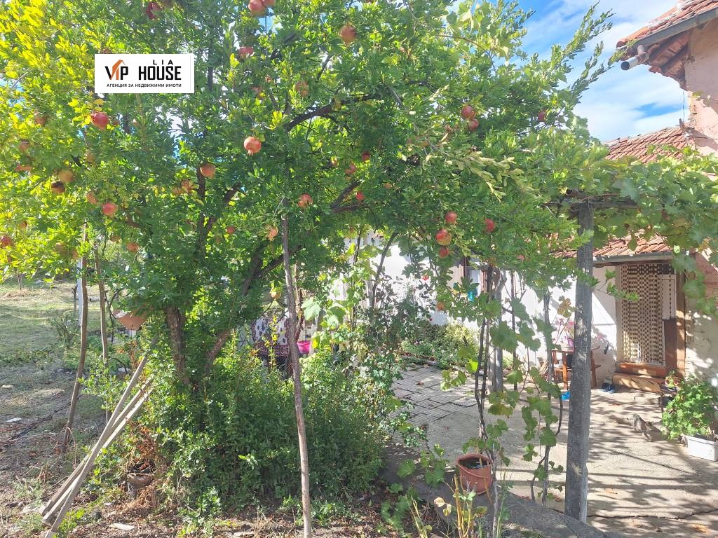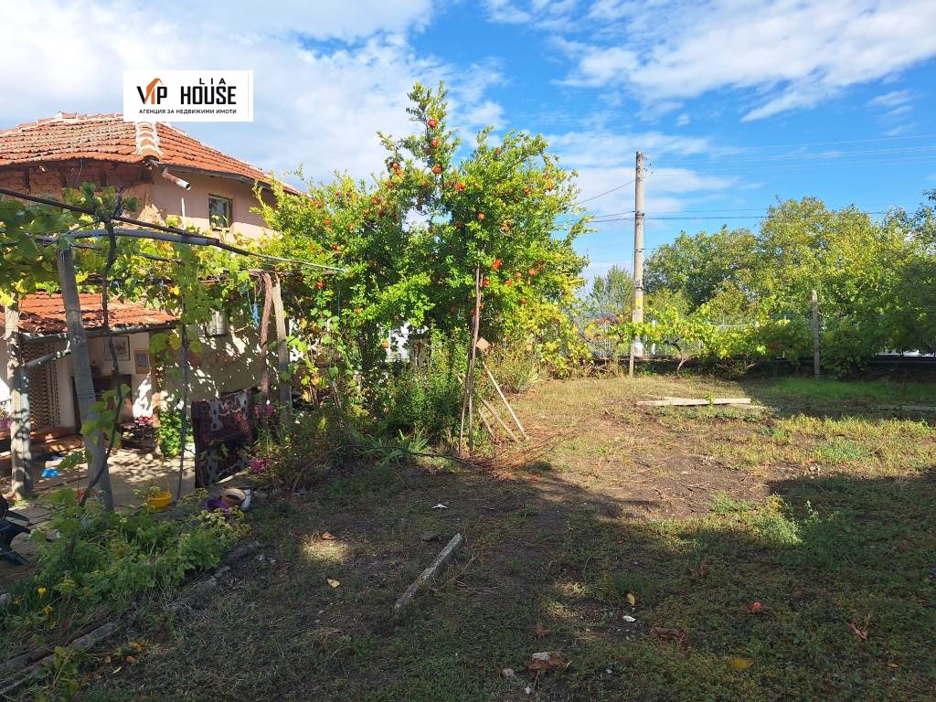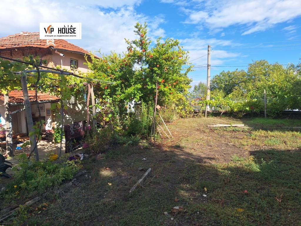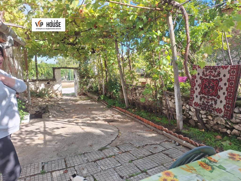 Дворът е добре поддържан, със зеленина тревна площ и външна чешма. Има допълнителна стопанска постройка и място за паркиране. Подходящ за градина, барбекю зона или изграждане на малък басейн.