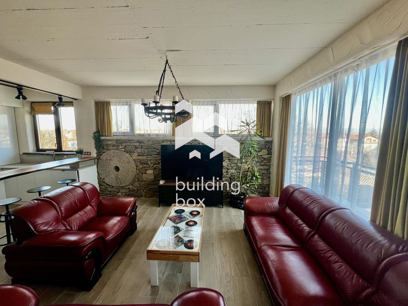 Билдинг Бокс предлага под наем просторен, тристаен, дизайнерски обзаведен мезонет, находящ се в квартал Горубляне, в непосредствена близост до 82-ро училище Васил Априлов.