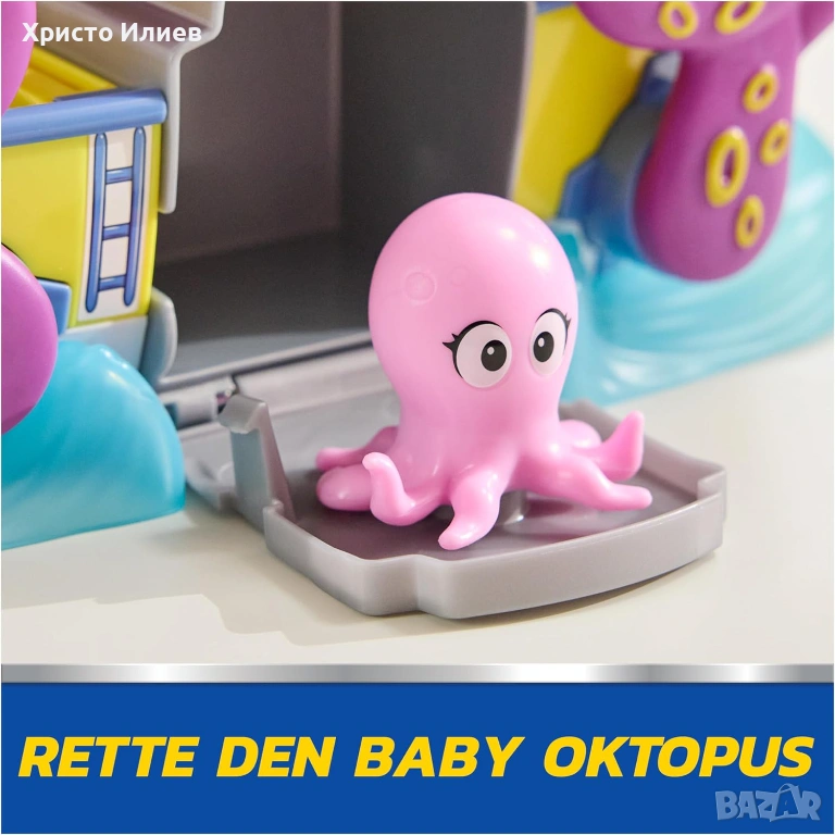 Съдържание: 1 комплект за игра с октопод, 1 състезателна фигурка Chase Pup Squad, 1 бебе калмар, 1 спасителна лодка