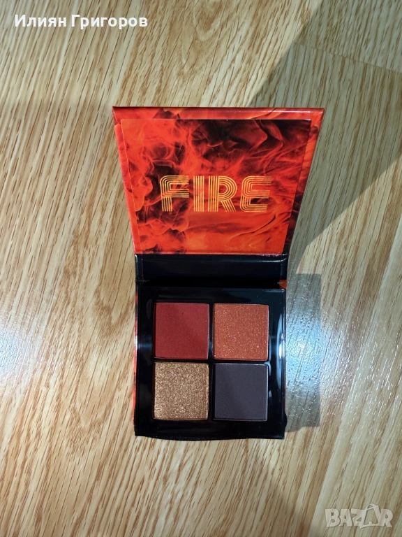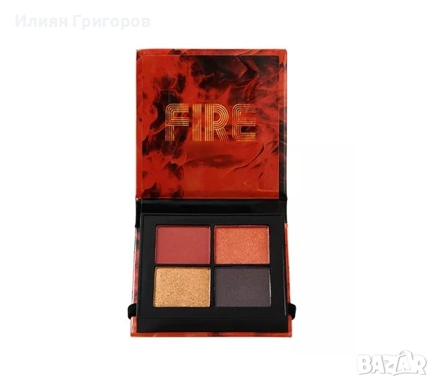 Съдържа 4 цвята в топли огнени нюанси – матови и блестящи, подходящи както за ежедневен, така и за по-изразен грим.