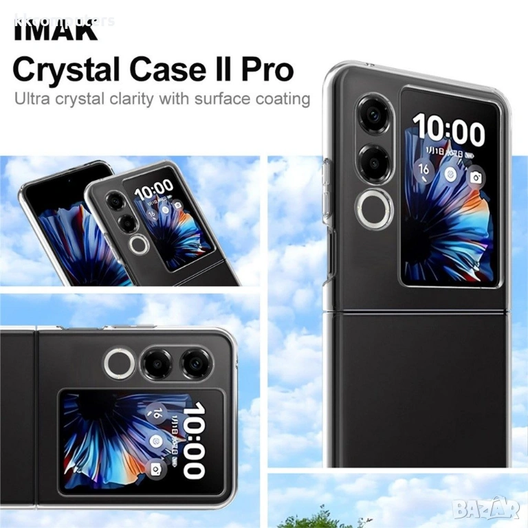 Прозрачният калъф IMAK Crystal Case II Pro за ZTE nubia Flip2 5G предлага перфектна защита, която не скрива дизайна на вашия сгъваем телефон. Изработен от висококачествена PC пластмаса със специално покритие, този калъф е изключително прозрачен, устойчив на надраскване и пожълтяване. Двуделната конструкция (горен и долен капак) осигурява перфектно прилягане и пълна защита на предния и задния панел. Повдигнатите ръбове предпазват екрана и камерата.