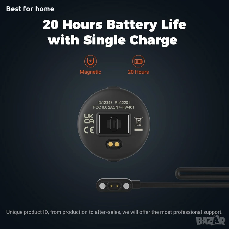 Ултра дълъг живот на батерията: Гривната за пулсомер HW401 се предлага с акумулаторна батерия и магнитен кабел за зареждане. Позволява до 20+ часа непрекъсната употреба с едно зареждане, отговаря на изискванията за дългосрочни тренировки или състезания. Спестете много пари от батерията!